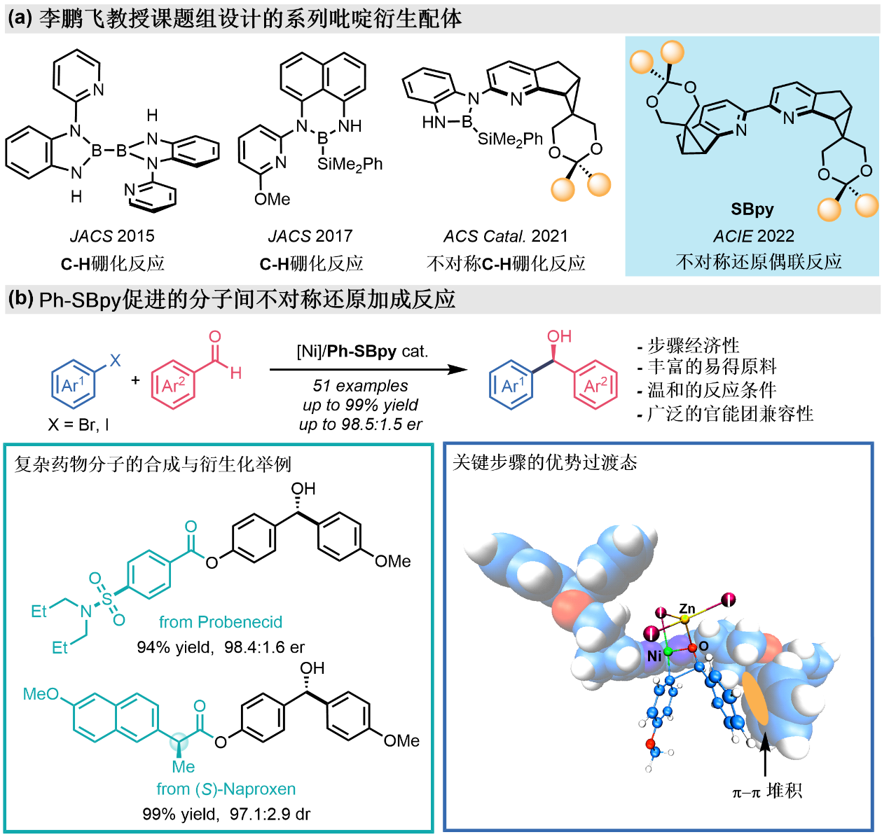 Prof. Li rationally designed and synthesize a tunable chiral 2,2'-bipyridine scaffold SBpy, and its effectiveness was demonstrated in the first highly enantioselective Ni -catalyzed addition of aryl halides to aldehydes. The approach is more step-economic than conventional strategies and allowed the preparation of various diaryl carbinols without the need to use preformed metallic reagents.