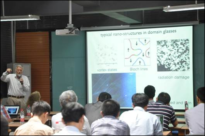 同日下午,作为本次年会的重要组成部分,bwin邀请众位专家学者在我校外文楼十层报告厅内举办了智能材料前沿研讨会。由英国剑桥大学四院院士Prof. Salje、德国学者Prof. Bussmann-Holder、聂建峰教授和王晓临教授相继进行了学术报告,并与在场人员开展了热烈的讨论。国外专家的报告内容充实,观点新奇,成果丰硕;讨论过程中,与会人员思维活跃,讨论热烈。最终会议在大家意犹未尽中落下帷幕,到会人员皆表示受益匪浅,意犹未尽。