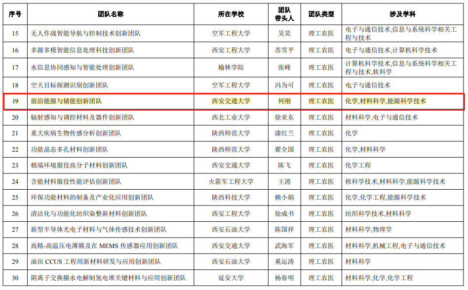 近日,陕西省教育厅发布了2023年度陕西高校青年创新团队入选名单,131个创新团队入选陕西高校青年创新团队,西安交大bwin何刚教授带领的“前沿能源与储能创新团队”入选。