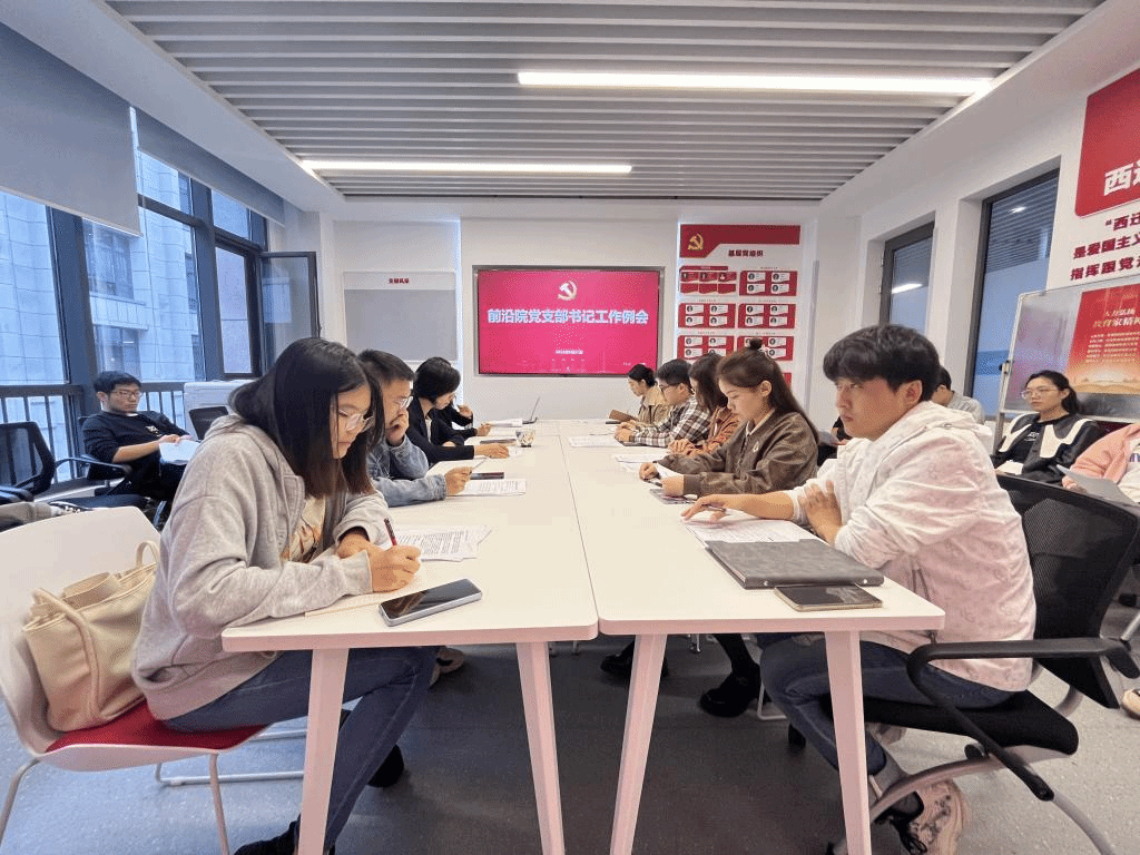 李妙辉作总结评议。她指出,各支部书记要继续扛起大旗,不断创新,狠抓落实,结合本中心、年级所蕴涵的丰富思政资源,在学深悟透的基础上真正汲取成长的力量,促进学院各方面工作更上一层楼。各党支部将深入围绕“七个有力”,打造“六个过硬”,运用“三张清单”,不断强化理论学习、深化调查研究,促进解决发展难题,推动党建和业务深度融合。