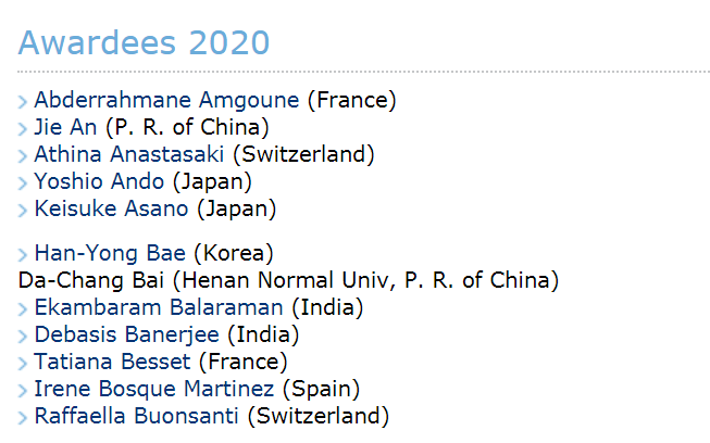 该奖项设立于1999年,由德国Thieme数据库三大化学期刊Synthesis、Synlett和Synfacts的学术编委会在全球范围内遴选,授予在化学合成、催化及有机化学其他相关领域取得出色成果并具有很大发展潜力的青年学者,旨在认可和鼓励年轻一代有机化学家。2020年全球范围内有112人获此殊荣。