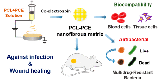 此成果于以“Biomimetic Elastomeric Polypeptide-Based Nanofibrous Matrix for Overcoming Multidrug-Resistant Bacteria and Enhancing Full-Thickness Wound Healing/Skin Regeneration”为题目,发表在国际著名期刊ACS Nano 杂志(影响因子13.709)。bwin为该论文的第一作者和唯一通讯作者单位。雷波课题组在设计新型生物活性材料用于骨组织再生(Biomaterials, 2018, 178, 36; Advanced Functional Mateirals, 2015, 25, 5016)、骨骼肌再生(Biomaterials, 2018, 157,40; Biomaterials, 2018, 175, 19)、肿瘤诊疗(ACS Nano, 2018, 12, 2017; Biomaterials, 2015, 59, 21)已经取得了一系列的进展。