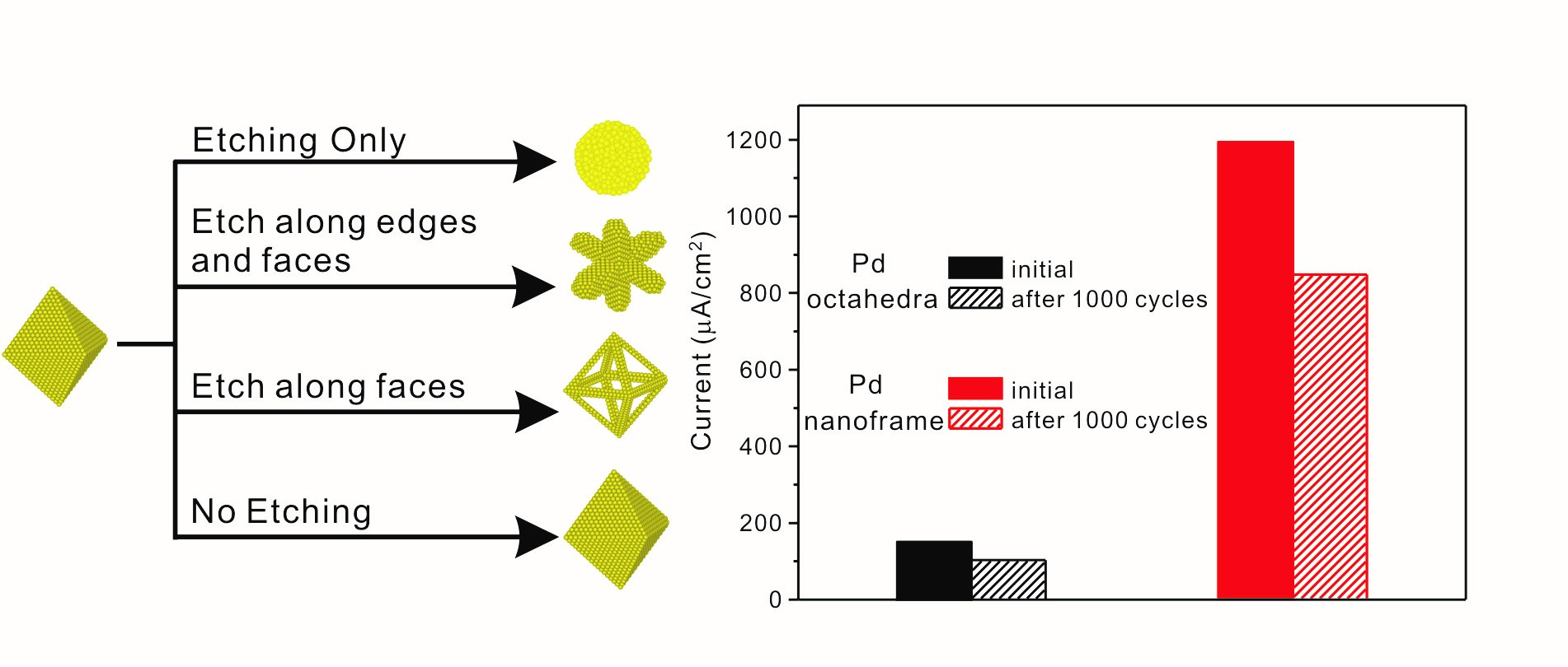 该研究成果已发表在化学领域著名期刊《ACS Nano》(影响因子13.334)上,文章标题为“Synthesis of Pd Nanoframes by Excavating Solid Nanocrystals for Enhanced Catalytic Properties”。bwin为该文章的第一作者及通讯作者单位,论文链接为http://pubs.acs.org/doi/abs/10.1021/acsnano.6b06491。